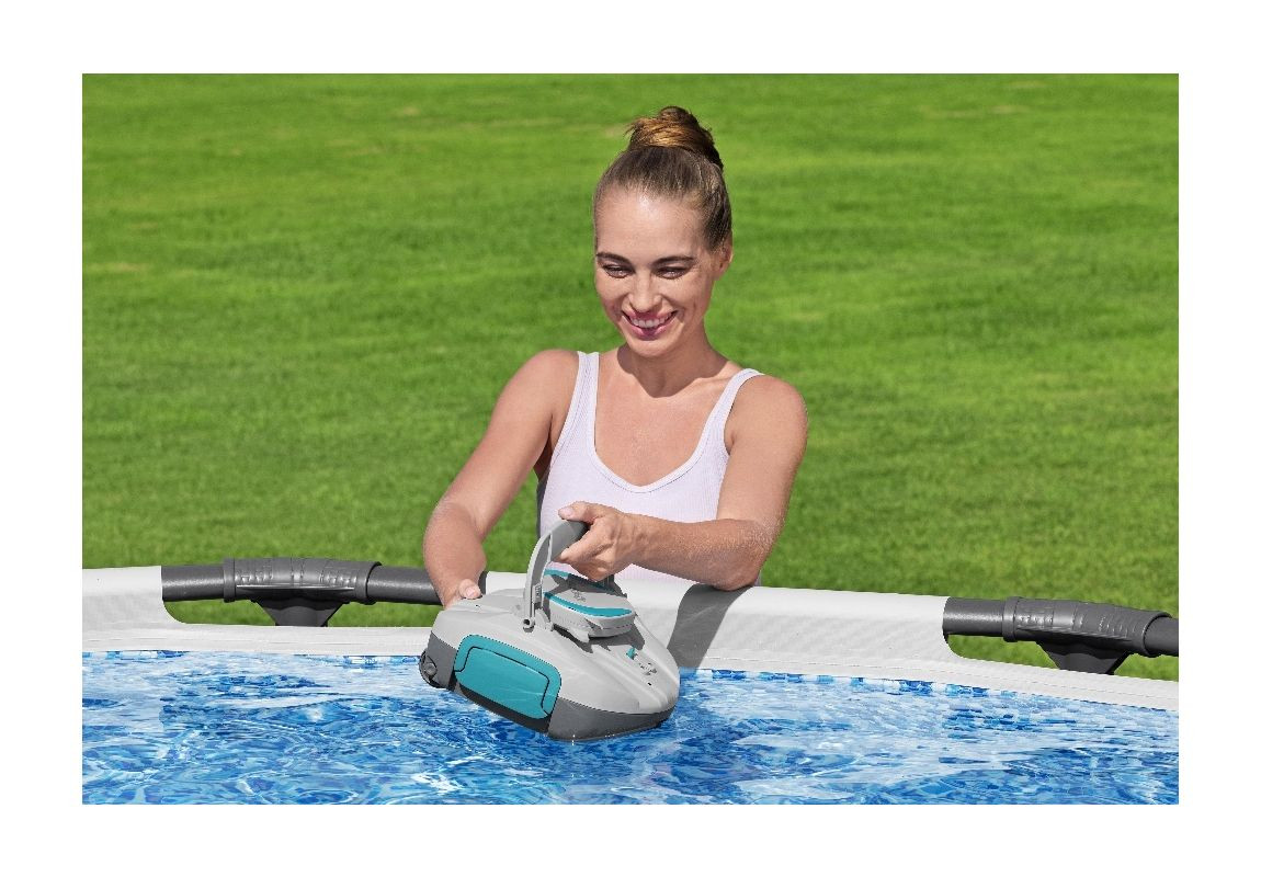 Bestway® automatski robotski usisivač za bazen AquaTronix G100 je napredni robotski usisivač dizajniran za automatsko čišćenje vašeg bazena. Zahvaljujući svojoj samohodnoj konstrukciji, usisivač se samostalno kreće po dnu bazena i učinkovito uklanja nečistoće, osiguravajući kristalno čistu vodu tokom cijele sezone. Jednostavno i pouzdano rješenje za bezbrižno uživanje u vašem bazenu!